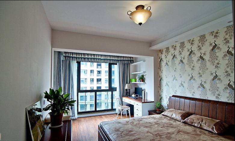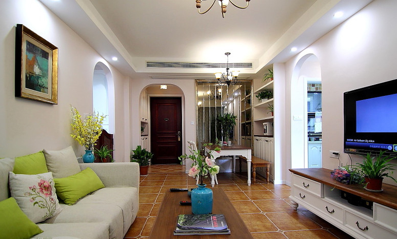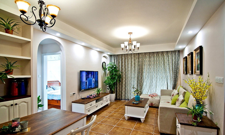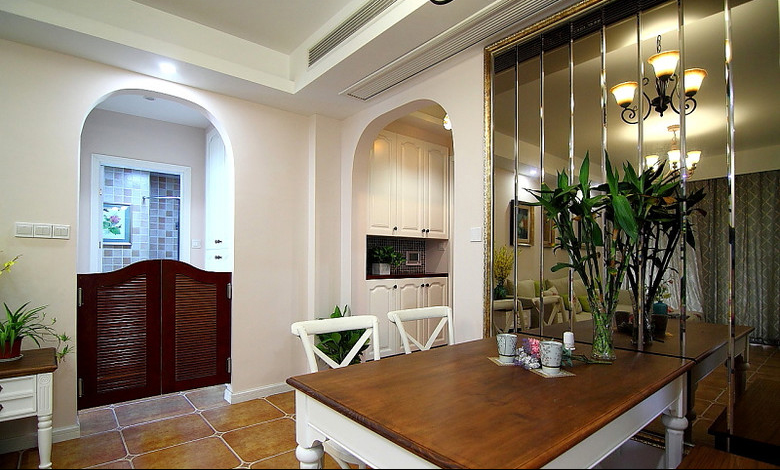 設(shè)計說明:美式鄉(xiāng)村風(fēng)格摒棄了繁瑣和奢華,并將不同風(fēng)格中的優(yōu)秀元素匯集融合,以舒適機(jī)能為導(dǎo)向,強(qiáng)調(diào)“回歸自然”,使這種風(fēng)格變得更加輕松、舒適。美式鄉(xiāng)村風(fēng)格突出了生活的舒適和自由,不論是感覺笨重的家具,還是帶有歲月滄桑的配飾,都在告訴人們這一點(diǎn)。特別是在墻面色彩選擇上,自然、懷舊、散發(fā)著濃郁泥土芬芳的色彩是美式鄉(xiāng)村風(fēng)格的典型特征。美式鄉(xiāng)村風(fēng)格的色彩以自然色調(diào)為主,綠色、土褐色最為常見;壁紙多為純紙漿質(zhì)地;家具顏色多仿舊漆,式樣厚重;