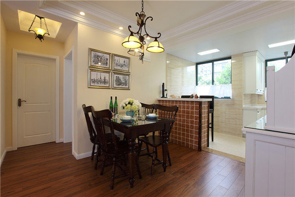 設(shè)計(jì)說明:摒棄了繁瑣和奢華,并將不同風(fēng)格中的優(yōu)秀元素匯集融合,以舒適機(jī)能為導(dǎo)向,強(qiáng)調(diào)“回歸自然”,使這種風(fēng)格變得更加輕松、舒適。美式鄉(xiāng)村風(fēng)格突出了生活的舒適和自由,不論是感覺笨重的家具,還是帶有歲月滄桑的配飾,都在告訴人們這一點(diǎn)。特別是在墻面色彩選擇上,自然、懷舊、散發(fā)著濃郁泥土芬芳的色彩是美式鄉(xiāng)村風(fēng)格的典型特征。美式鄉(xiāng)村風(fēng)格的色彩以自然色調(diào)為主,綠色、土褐色最為常見;壁紙多為純紙漿質(zhì)地;家具顏色多仿舊漆,式樣厚重;